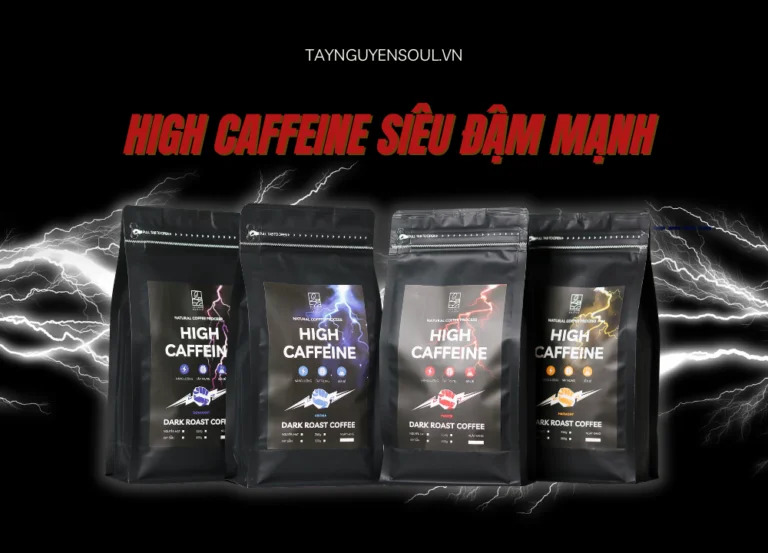Cà Phê nguyên chất đậm mạnh High Caffeine là dòng cà phê đậm mạnh với body dày, ngọt và hàm lượng caffeine cao từ hạt cà phê Robusta sơ chế theo phương pháp phơi khô tự nhiên (natural process). Chỉ với 1 ly High Caffeine buổi sáng cung cấp ngay cho bạn năng lượng, sự tập trung để hoạt động suốt một ngày dài.